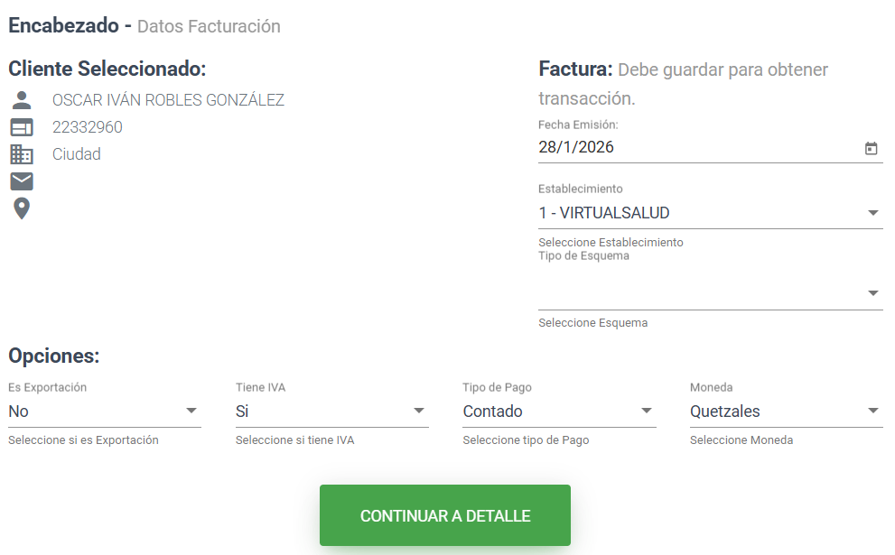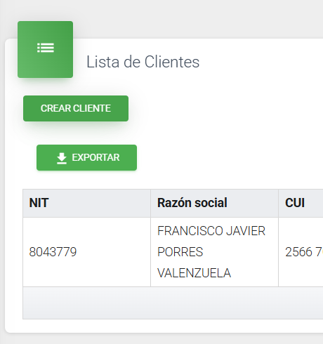 sino se encuentra el cliente, hay que agregarlo. Dandole click a Crear cliente.