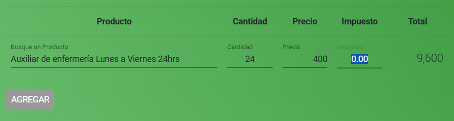 Llenar los datos de cantidad y precio, según el caso. Y pulsar el botón agregar