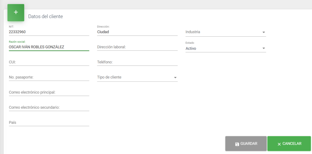 Datos obligatorios: NIT, nombre, dirección y teléfono: