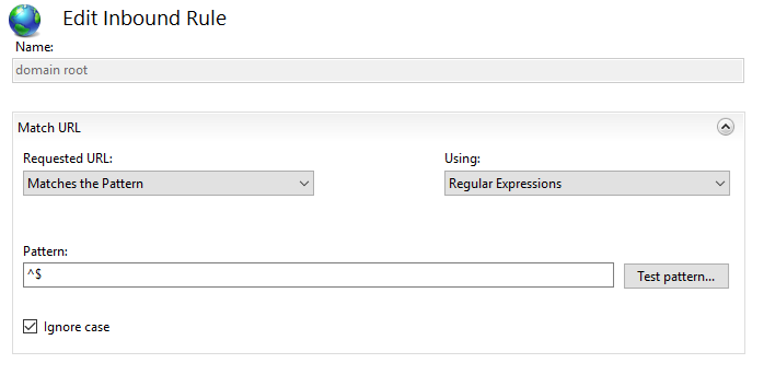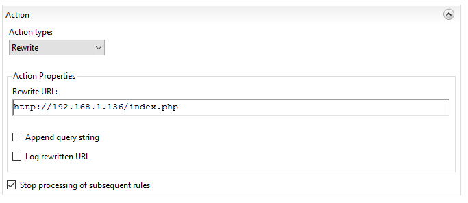 Crear una nueva regla en el IIS, para cuando esté vacío el url posterior al “/”, que adjunte el /index.php al url del home.