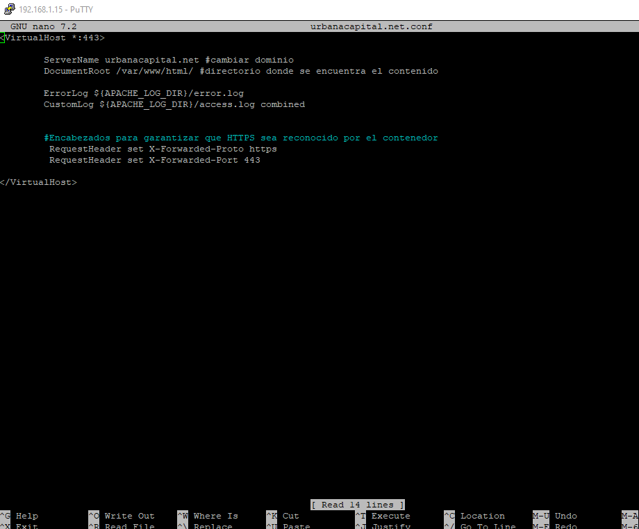 - crear archivo urbanacapital.net.conf en el directorio sites-available