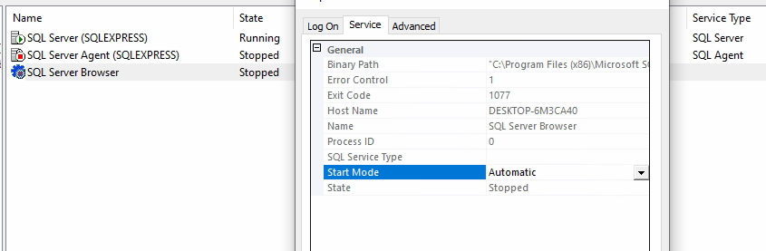 9. Verificar que la instancia y los servicios de SQL Server estén habilitados. Revisar que el servidor de SQL Server permita conecciones remotas.