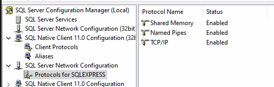 Los protocolos tiene que estar en Enable los tres. (hay que reiniciar los servicios para que tome efecto)