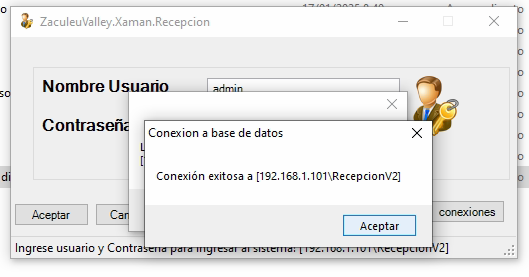 - Instalación de la base de datos: se debe asegurar de que el set de base de datos esté instalado correctamente. Es necesario, además de la base de RecepcionV2, agregar, Citas, Cuentas, y LaboratorioV2.