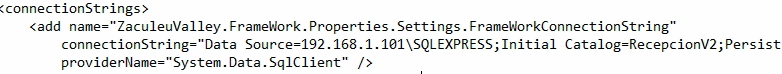 Verificar en el config de la aplicación a donde está apuntando el archivo de configuración, en este caso, es el: 192.168.1.101\SQLExpress