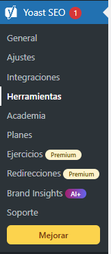 irse a yoast SEO, herramientas.